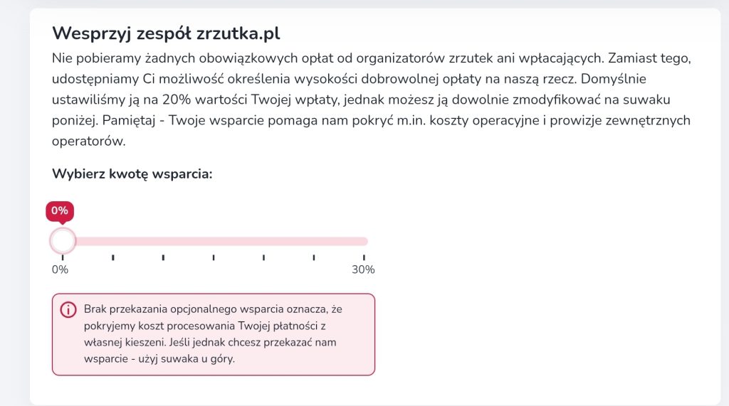 Nie musisz przekazywać dodatkowej darowizny dla zespołu Zrzutki: